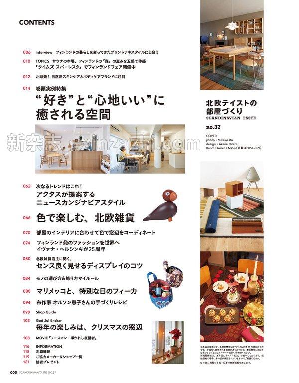 杂志简介 巻頭実例特集 “好き”と “心地いい” に癒される空間 【そのほか、主なコンテンツ】 杂志目录 interview フィンランドの暮らしを彩ってきたプリントテキスタイルに出合う TOPICS サウナの本場、フィンラドの「森」の恵みを五感で体感 「タイムズ スパレスタ」でフィンランドフェア開催中 北欧発! 自然派スキンケア&ボディケアブランドに注目 次なるトレンドはこれ! アクタスが提案するニュースカンジナビアスタイル 色で楽しむ、北欧雑貨 部屋のインテリアに合わせて色で窓辺をコーディネート フィンランド発のファッションを世界へ イヴァナヘルシンキが25 周年 北欧雑貨店主に聞く、センス良く見せるディスプレイのコツ モノの選び方&飾り方マイルール マリメッコと、特別な日のフィーカ 布作家 オルソン恵子さんの手づくりレシピ 毎年の楽しみは、クリスマスの窓辺 MOVIE『 ノースマン 導かれし復讐者』 Shop Guide 展开目录收起目录 杂志试看 北欧テイストの部屋づくり no.37【付録:カレンダー】 (NEKO MOOK 3193) 出版日期:2022年 11月 29日 新杂志 – 提供高质量日系杂志 百度网盘下载 以上预览图为压缩版,下载后为无水印PDF文件 杂志下载价格2.88 金币VIP免费立即购买 THE END 喜欢 0 分享 收藏 0